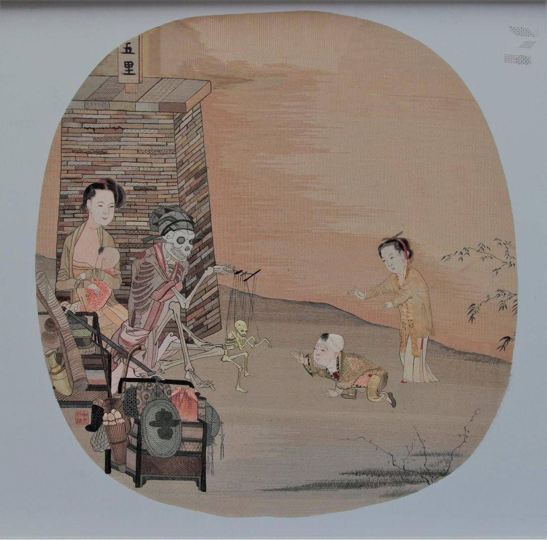 同期,展览还呈现7件以南宋李嵩《骷髅幻戏图》为底本创作确现代刺绣作品。作品概述期骗近50种传统苏绣针法,把原来的刺绣话语的指向圭表及发挥风物给予糟塌,创造出了新的艺术风物和审好意思内涵。该系列曾于第57届威尼斯双年展中国馆初次展出。