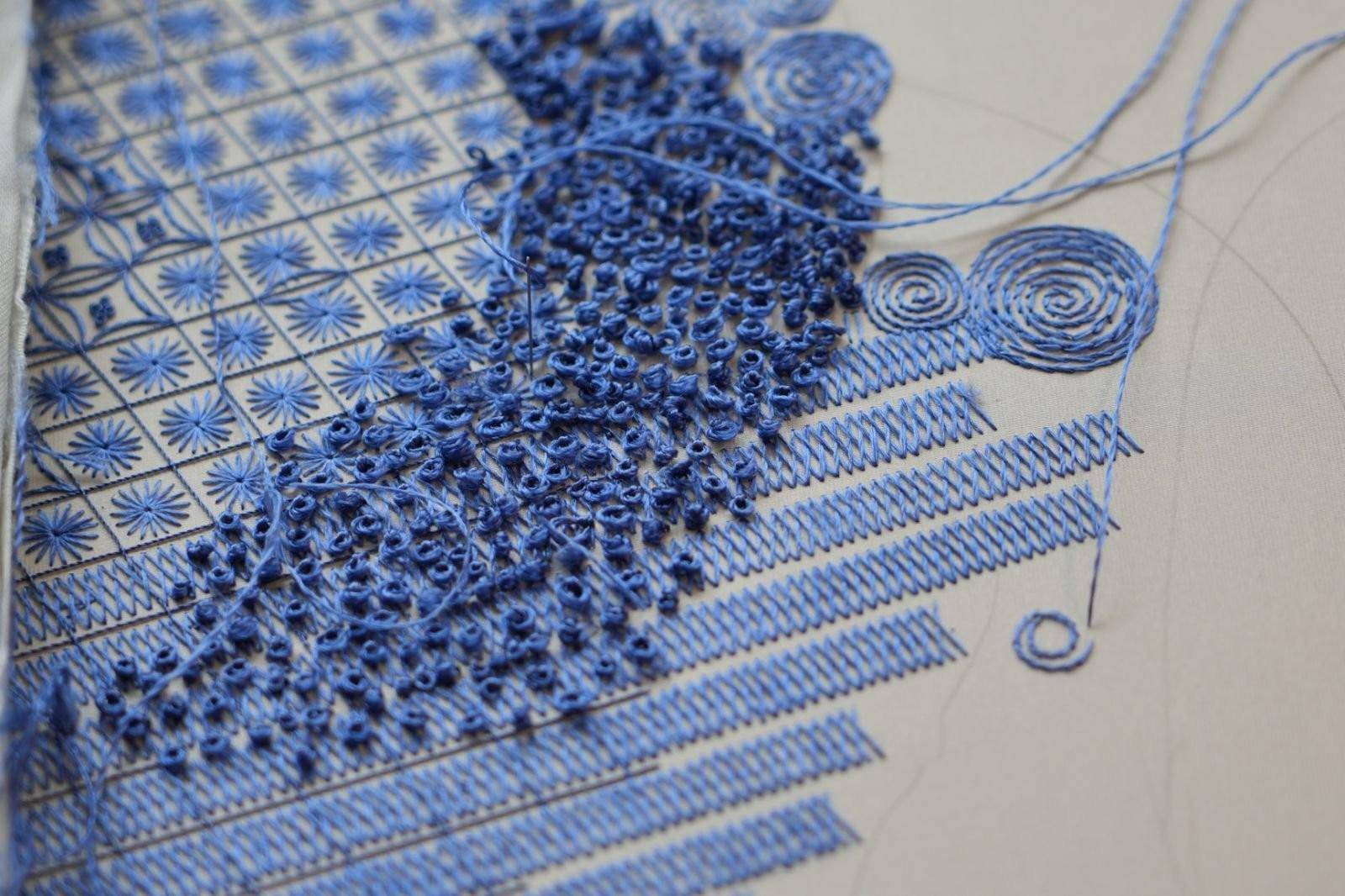 展览共呈现58件作品,分为三个彼此递进的板块,从手工艺的技法根基开拔,渐渐过渡至对针法话语的重组与延展,呈现刺绣从“技”到“艺”,再到“要害”层面的滚动,体现针法逐渐走向自发抒发,也为传统工艺在当天语境中的伸开提供新的视角。